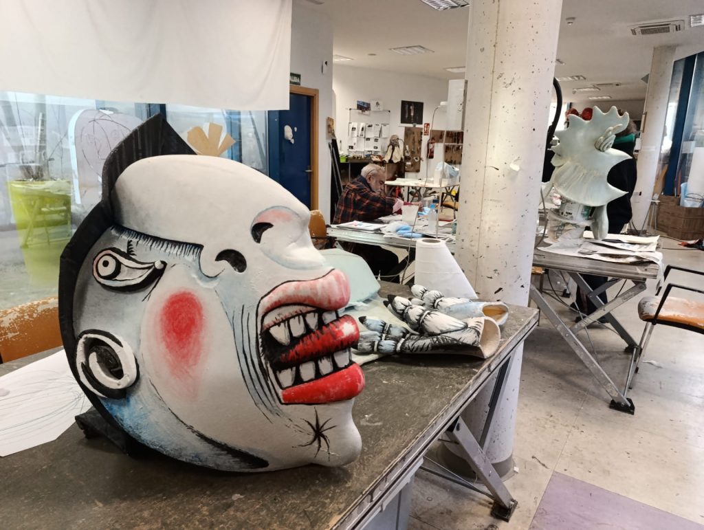 Los alumnos de la Escuela del Centro del Títere participan en el desfile de carnaval con sus máscaras gigantes inspiradas en el universo de Picasso